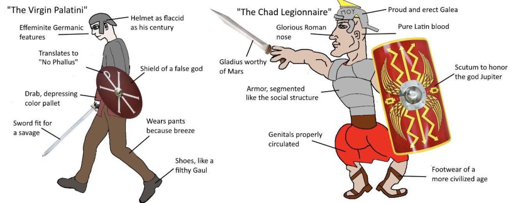 Populaarihistorian välittämä mielikuva Rooman armeijasta on ylläolevan meemin kaltainen. Prinsipaatin legioonat olivat sotilaallisesti ja teknologisesti ylivertaisia, mutta myöhäisantiikin aikana Rooman armeija babarisoitui ja veltostui, kunnes se ei enää kyennyt pitämään puoliaan maahantunkeutujia vastaan. Mutta onko asia todella näin?