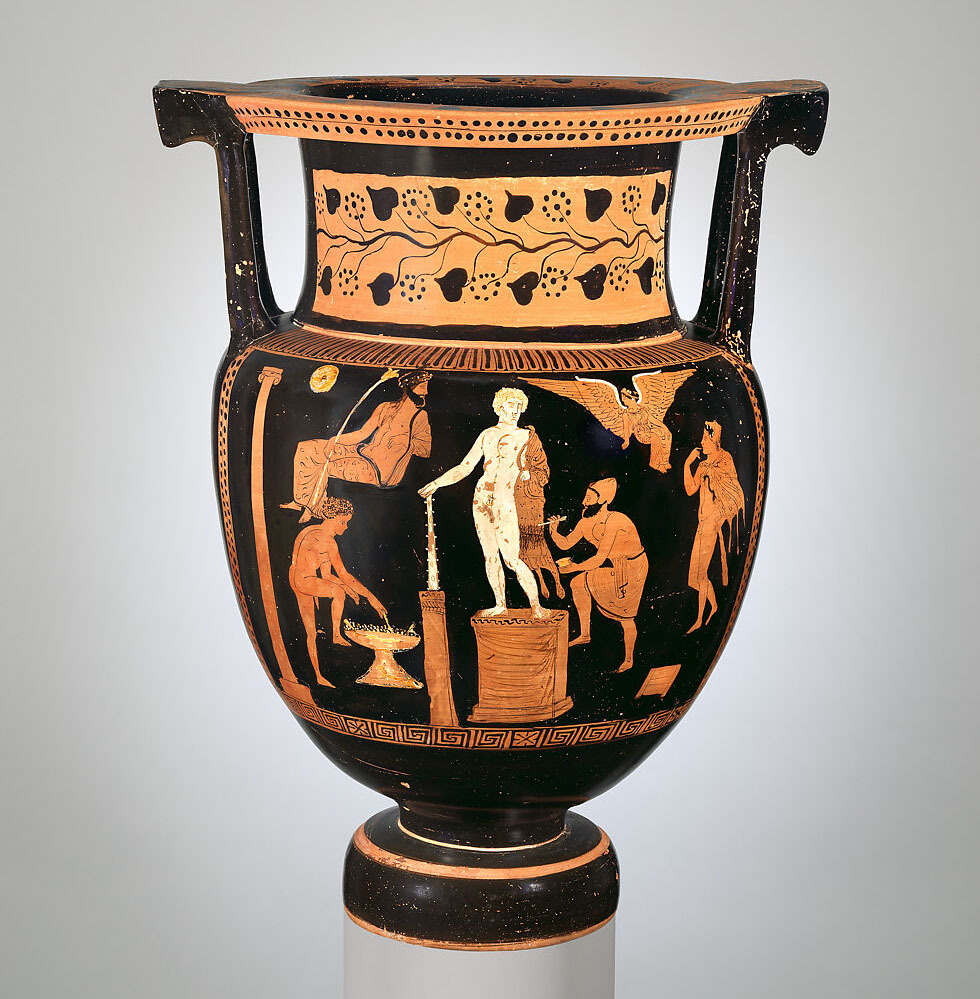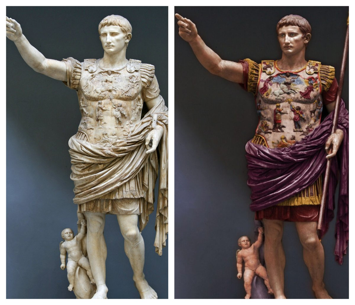 Arkeologiset ja historialliset lähteet todistavat aukottomasti, että sekä kreikkalaisilla että roomalaisilla oli tapana maalata veistokset joko kokonaan tai osittain. Värien lisäksi taiteilijat käyttivät patsaskoristelussa hyväksi kultausta, hopeointia ja kalliita kiviä. Antiikin ajoista on säilynyt sekä veistosten kuvauksia että kuvia siitä, kun niitä maalataan. Vuodesta 1981 lähtien antiikin veistoksien värijäämiä on tutkittu huolellisesti monispektrikuvantamisella, kemiallisella pigmenttianalyysillä ja mikroskoopeilla. Tulokset puhuvat puolestaan.